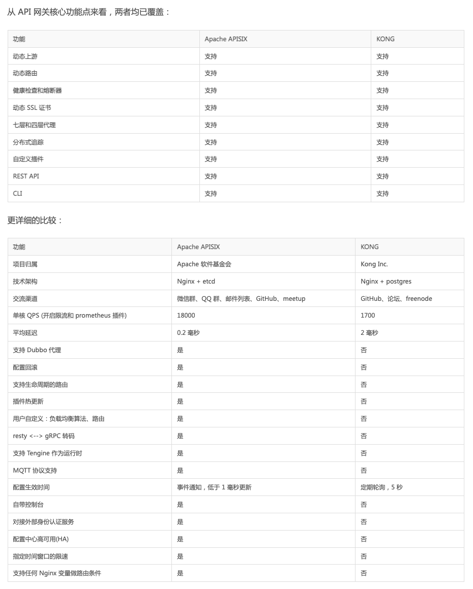 ref: API 网关 Apache APISIX 和 Kong 的选型对比