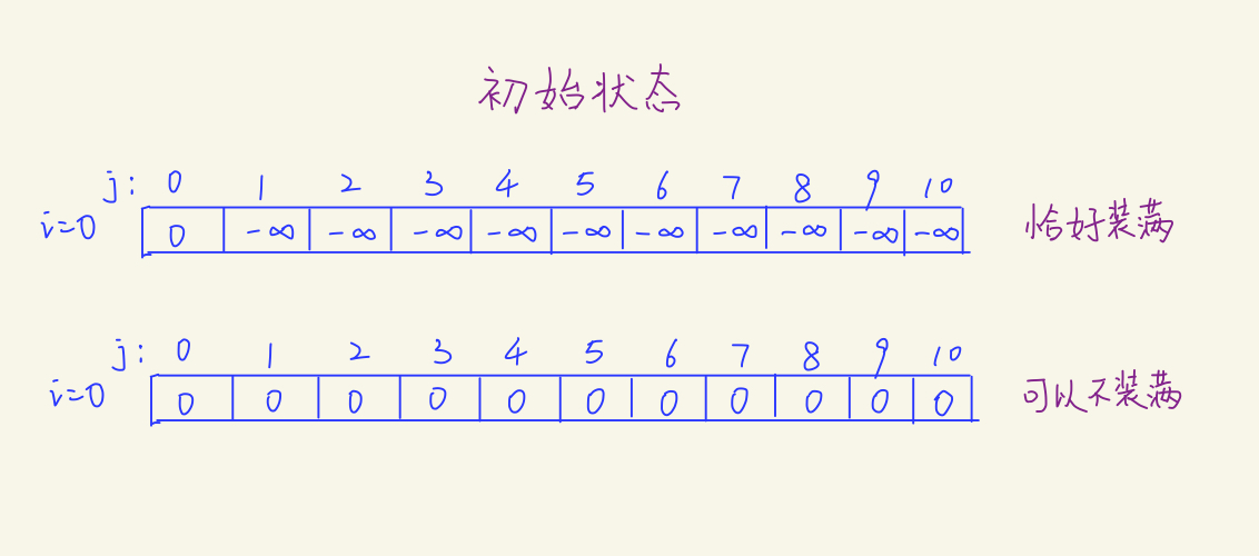 因为如果要求恰好装满,那么只有j=0的初始状态是合法的。从别的通道得出的依然会是负无穷大。