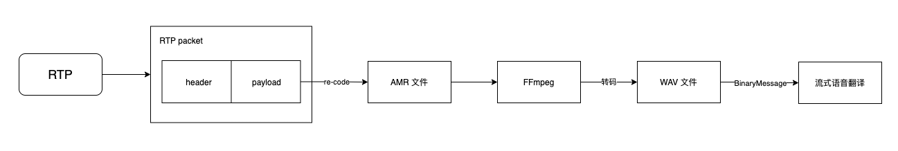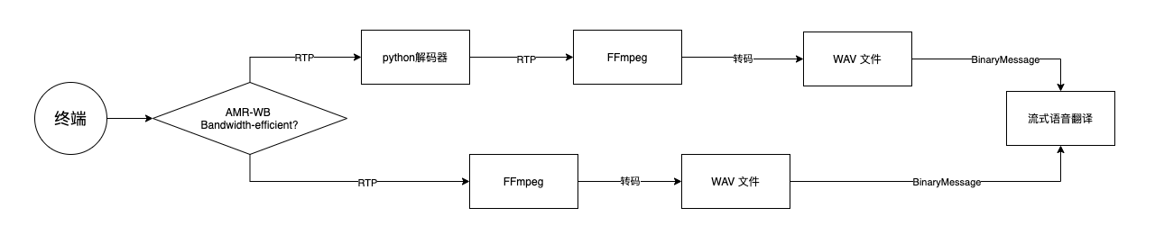 和以往客户接入不同,需要我们自行监听RTP流(通过SDP描述文件),并且终端输入的音频流并非我们可接受的WAV/PCM格式,而是AMR-WB,需要我们监听RTP流获取音频数据。终端通信设备是现网设备,编码方式无法变更,需要我们来实现音频数据的解码。