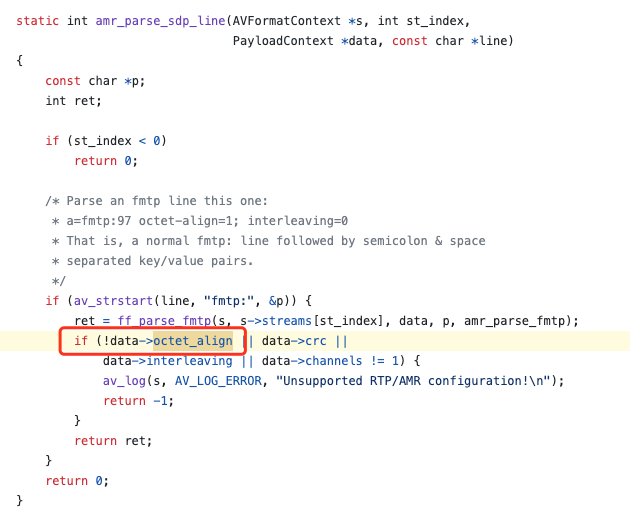 1.简单分析一下FFmpeg对amr的解码部分,对于octet-aligned模式,实际上就是按照字节读取,逐帧剥离数据,送到后面的decoder: