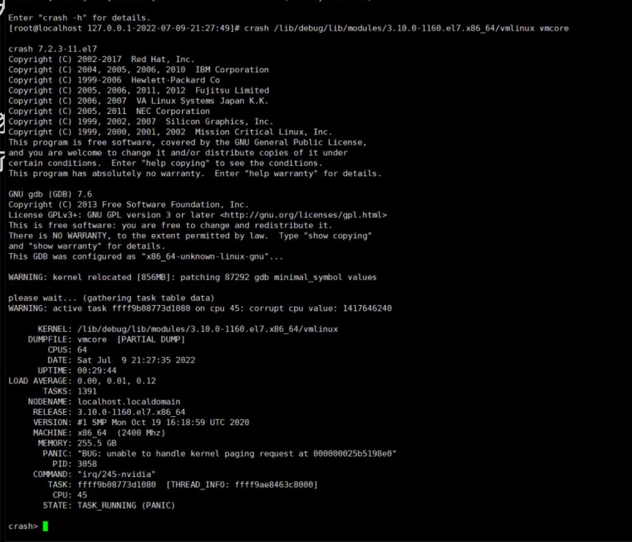 - 发生崩溃的内核映像文件(vmlinux),包含调试内核所需调试信息