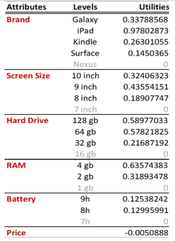 Tablet Conjoint (sub) Utilities (β Parameters Estimates)