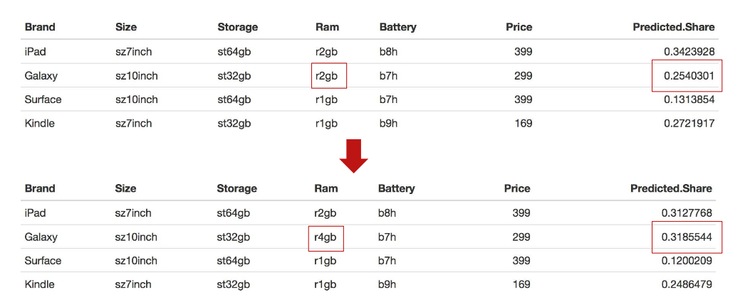 - 预测提议的新产品(即属性捆绑)的市场份额和影响