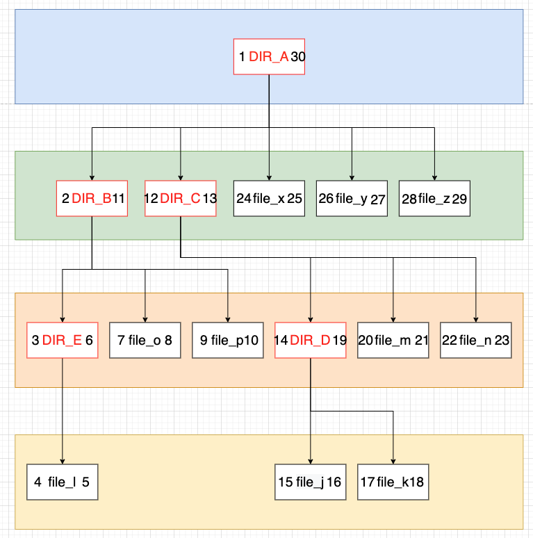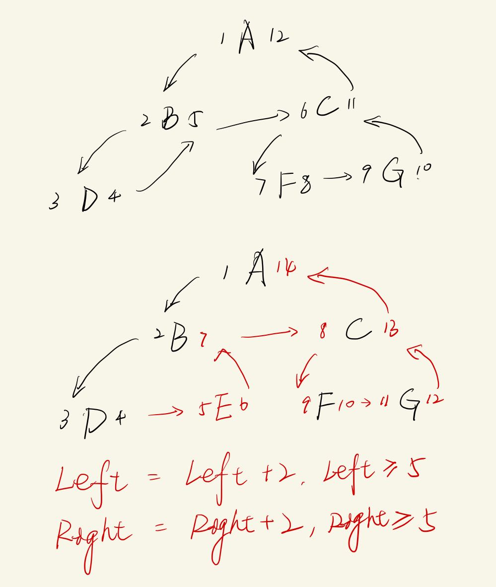 根据树的深度遍历对节点编号,记录首、末次访问到该节点的数字。通过比较数字或的层级结构关系。